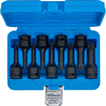 Jeu de douilles à embouts à choc - 12,5 mm (1/2") - Denture multiple intérieure (pour XZN) M4 - M16 - 9 pièces